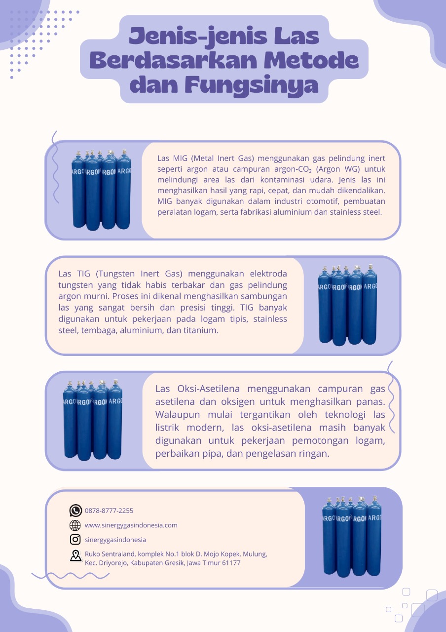 Gas Argon memiliki peran penting dalam proses pengelasan TIG (Tungsten Inert Gas) dan MIG (Metal Inert Gas). Gas Argon digunakan untuk melindungi logam yang sedang dilas dari oksidasi, sehingga hasil las lebih rapi, kuat, dan tahan lama. - Industri Metalurgi: